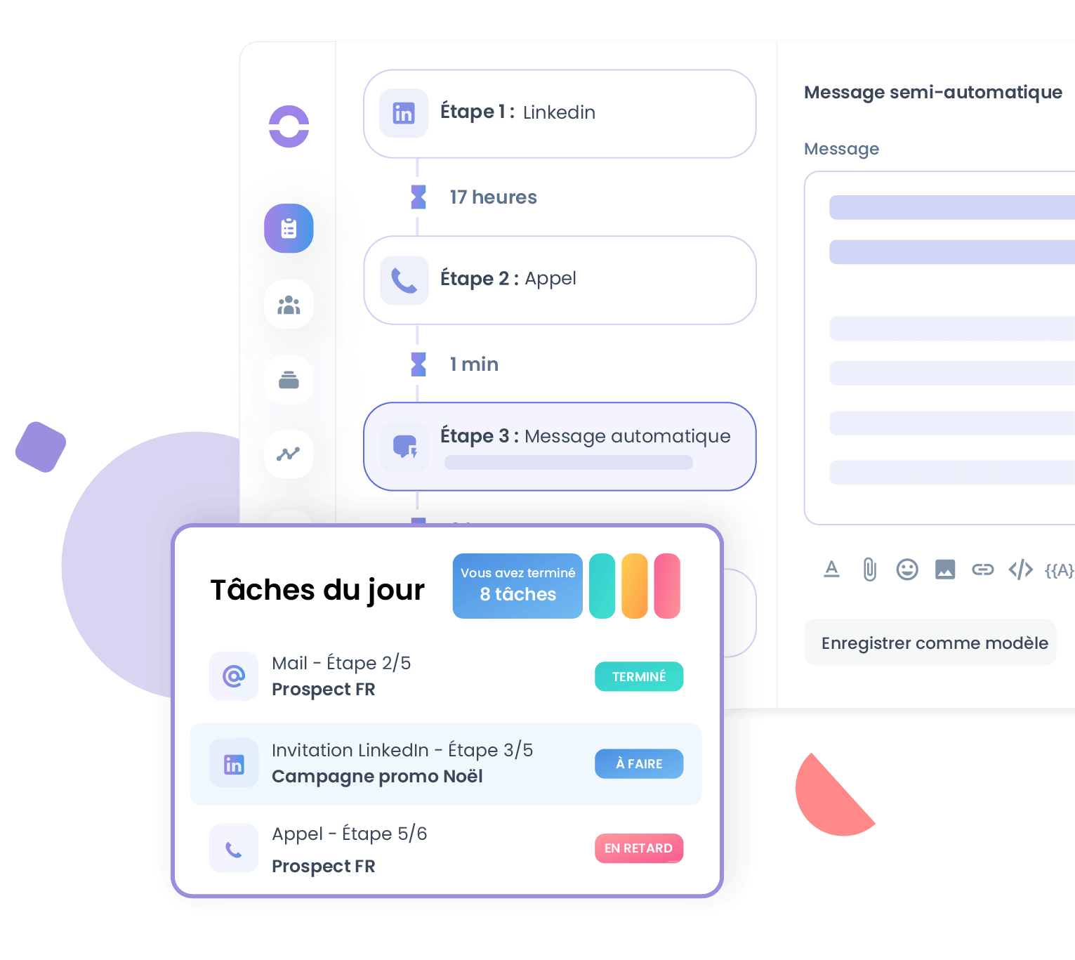 Appels, mails, SMS, réseaux sociaux : prenez en main tous vos canaux de communication regroupés dans une seule interface, pour échanger de manière efficace avec vos clients et prospects.