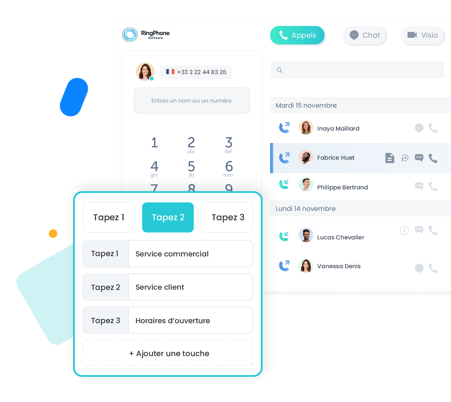 Appels, messages, mails, visios, centralisés dans une interface simple et intégrée à vos outils